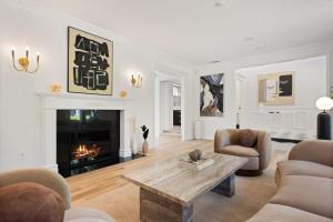 Дополнительные удобства включают сушильную машину для белья, стиральную машину, утюг с гладильной доской и сушилку для одежды, детскую кроватку (манеж), шкаф-гардероб, сейф, гардеробную комнату, рабочий стол, диван-зону отдыха, паркетный пол из твердых пород древесины сочетается с ковровым покрытием. Также имеются камин зона просмотра телевизора с плоским экраном со стриминговыми сервисами рядом розетки у кровати адаптеры питания игровая приставка защитные накладки на розетки детектор дыма датчик угарного газа огнетушитель пижамы полотенца постельное бельё.