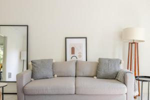 В кондиционируемой квартире имеется отдельная спальня с одной кроватью и собственная ванная комната с феном и косметическими принадлежностями. Кухня полностью оборудована: есть духовка, микроволновая печь, посудомоечная машина, кухонная утварь, а также чайник и кофеварка для удобства гостей. Дополнительно предоставляются отопление, гладильные принадлежности (утюг и гладильная доска), полотенца и постельное бельё.