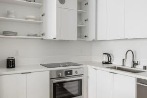 Внутри квартира включает одну спальню с одной кроватью и отдельную ванную комнату с бесплатными туалетными принадлежностями и феном. Полностью оборудованная мини-кухня оснащена духовкой, посудомоечной машиной, микроволновой печью, грилем для барбекю, средствами для приготовления чая и кофе, а также необходимой кухонной утварью. Дополнительно предоставляются кондиционер, отопление, утюг с гладильной доской, стиральная машина, полотенца и постельное бельё.