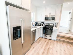 Полностью оборудованная кухня включает посудомоечную машину, плиту с духовкой, микроволновую печь, холодильник а также мини-кухню с принадлежностями для приготовления чая и кофе для удобства во время проживания. Для гостей предусмотрена парковка на улице с бесплатными местами рядом, вход осуществляется через отдельный приватный вход.