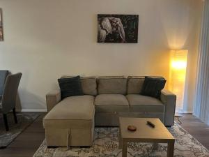 В жилом помещении имеется две кровати и полностью оборудованная кухня с плитой, холодильником, посудомоечной машиной, духовкой, микроволновкой и средствами для приготовления чая и кофе. Дополнительные удобства включают отопление, стиральную машину, сушилку для одежды, утюг, кондиционер и рабочий стол. В ванной комнате установлен гидромассажный отсек, также предоставляются шампунь и фен.