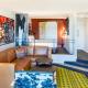 Gli ospiti possono gustare i pasti presso il ristorante interno oppure scegliere la cena a bordo piscina sul tetto accompagnata dal bar stagionale con vista su Hollywood. Tra i servizi disponibili vi sono WiFi a pagamento in tutte le aree dell’hotel oltre alla TV via cavo con canali pay-per-view. Completano l’offerta una piscina all’aperto aperta tutto l’anno servita da bar a bordo vasca, centro fitness, garage parcheggio comprensivo di posti riservati ai disabili, colonnine per la ricarica dei veicoli elettrici, servizio concierge, deposito bagagli, assistenza al tour desk, autonoleggio, lavanderia completa anche con servizio tintoria e stireria nonché check-in/check-out express alla reception operativa 24 ore su 24.