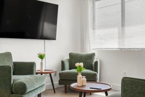 Жильё включает две спальни с двумя кроватями, собственную ванную комнату с душем и феном, а также утюг с гладильной доской. Гости оценят полностью оборудованную кухню с духовкой, плитой, холодильником, микроволновой печью, тостером, электрическим чайником и принадлежностями для приготовления чая и кофе вместе с кухонной посудой. Дополнительно предоставляются полотенца и постельное бельё, доступно отопление и стиральная машина, имеются бесплатные туалетные принадлежности.
