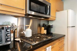 В жилье имеется одна спальня с деревянным полом, отоплением и постельным бельём для комфорта гостей. Полностью оборудованная кухня включает варочную панель, холодильник, микроволновую печь, тостер, кофемашину и принадлежности для приготовления чая и кофе, также предусмотрено обеденное пространство за столом. В ванной комнате есть необходимые средства гигиены — шампунь и кондиционер. Для удобства гостей предоставлены утюг с гладильной доской, рабочий стол и зона отдыха.