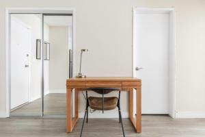 В кондиционированной квартире имеется одна спальня с одной кроватью и отдельная ванная комната с бесплатными туалетными принадлежностями и феном. Полностью оборудованная мини-кухня включает духовку, посудомоечную машину, микроволновую печь, чайник для заваривания чая и кофе, а также необходимую кухонную утварь. Дополнительные удобства включают гладильные принадлежности (утюг и гладильную доску), отопление, полотенца, постельное бельё и телевизор.