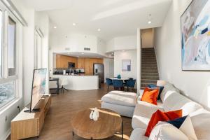 Пентхаус Crystal площадью три уровня в Лос-Анджелесе с потрясающим видом на марину и крытым бассейном включает одну просторную комнату с видами на озеро и море. Этот кондиционируемый апартамент располагает двумя спальнями, двумя ванными комнатами и отдельным входом для дополнительного уединения.