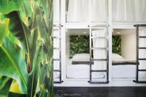 Хостел находился примерно в 15 минутах ходьбы от ближайшего метро и в 4-5 минутах от автобусной остановки, рядом было много самокатов. В комнатах с общими кроватями были шторы, которые добавляли уединения. Для гостей работали три отдельных санузла с душем и туалетом, а ещё была комната с двумя душевыми кабинами рядом друг с другом.