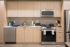 В апартаменте две спальни и две ванные комнаты с ванной и душем. Гости могут пользоваться полностью оборудованной кухней с плитой, холодильником, микроволновой печью, кухонной посудой и обеденным столом. В числе прочих удобств — кондиционер, отопление, постельное бельё, полотенца, шкаф для одежды и стиральная машина, по запросу предоставляется детская кроватка.
