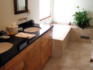 Проживание включает две отдельные спальни с тремя кроватями и три ванной комнаты с душевыми кабинами без поддонов и ваннами. Полностью оборудованная кухня оснащена духовкой, микроволновой печью, варочной панелью, посудомоечной машиной, холодильником, кофемашиной и принадлежностями для приготовления чая, рядом расположены обеденный стол и гриль для готовки на свежем воздухе. Внутри виллы обеспечен кондиционер, также доступны утюг, рабочий стол, гардеробная комната и шкафы-купе. Зона отдыха у камина включает диван-кровать — полы выполнены из плитки и паркета.