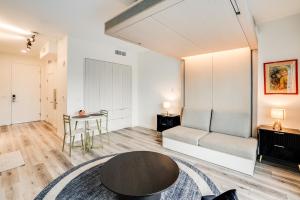 В этом хорошо оборудованном апартаменте имеется одна кровать и раскладной диван, паркетный пол из твердой древесины, отопление и кондиционер для комфортного проживания круглый год. Полностью оснащённая мини-кухня включает современные удобства: духовку, плиту, холодильник, посудомоечную машину, микроволновую печь, тостер, кофемашину и электрический чайник, также предусмотрены кухонная утварь и обеденный стол. В числе дополнительных удобств комнаты — рабочий стол, шкаф для одежды/гардеробная зона, утюг и стиральная машина.